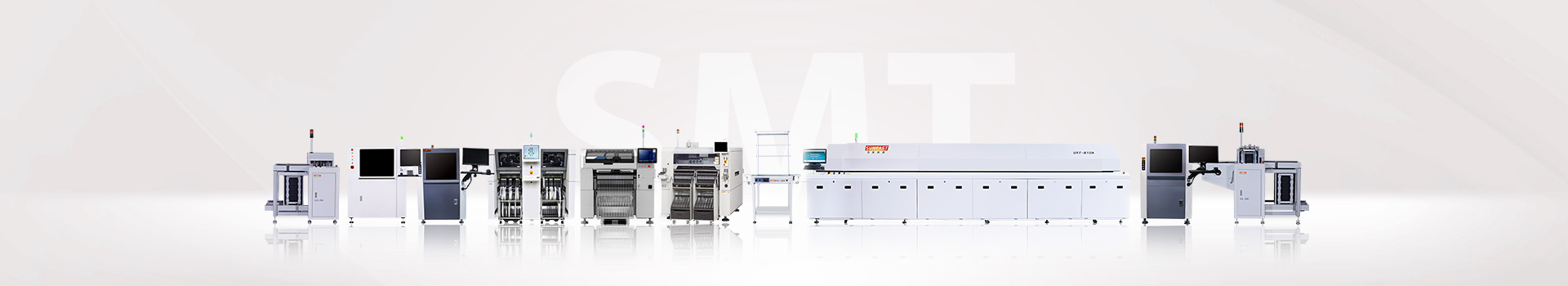 SMT周邊設備主要有:全自動PCB上下料機、平行移載機、PCB儲板機、NG/OK緩存機、接駁臺、光板真空上料機、翻板輸送機等小型機。