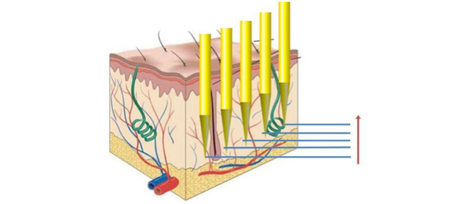 微針針尖發射射頻能量,可精準加熱皮脂腺、毛囊等皮膚組織。一方面,它能破壞痤瘡丙酸桿菌生存環境,減少炎癥;另一方面,它可以調節皮脂腺分泌,降低油脂產生,從根源上減少痤瘡形成,還能收縮毛孔,改善皮膚質地。