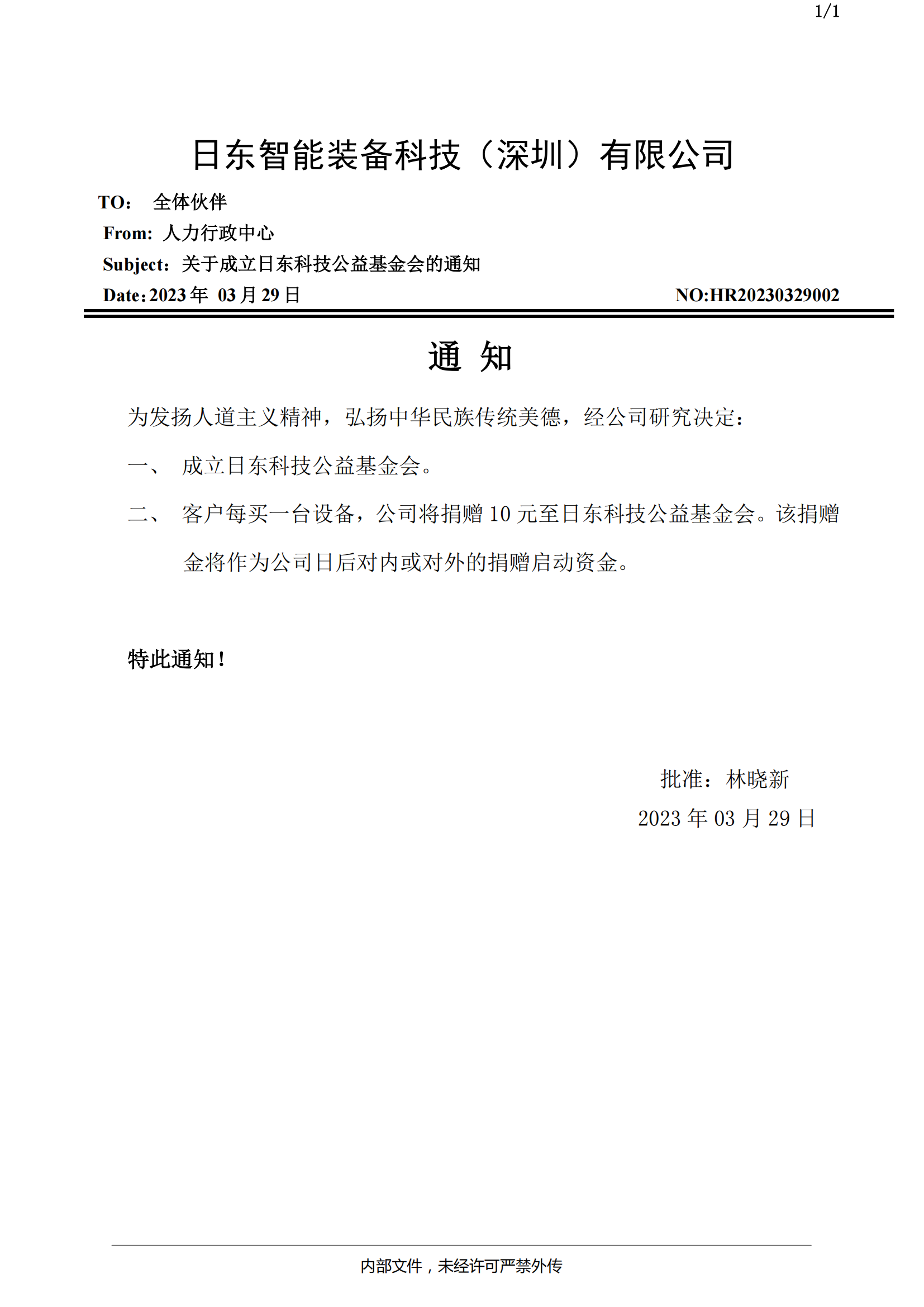二、客戶每買一臺(tái)設(shè)備,公司將捐贈(zèng)10元至日東科技公益基金會(huì)。