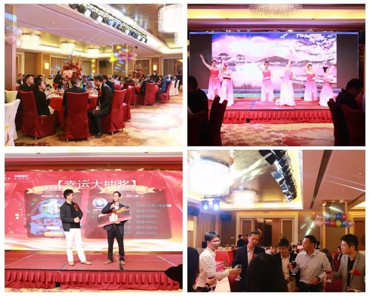 大會結束后,日東科技供應商答謝晚宴在寶利來酒店宴會廳舉行,總經理林曉新為2019年日東科技十大優秀供應商頒獎。晚宴上還準備了精彩的舞蹈表演和激動人心的抽獎環節,在2020新年即將到來之際,大家歡聚一堂,推杯換盞,其樂融融!