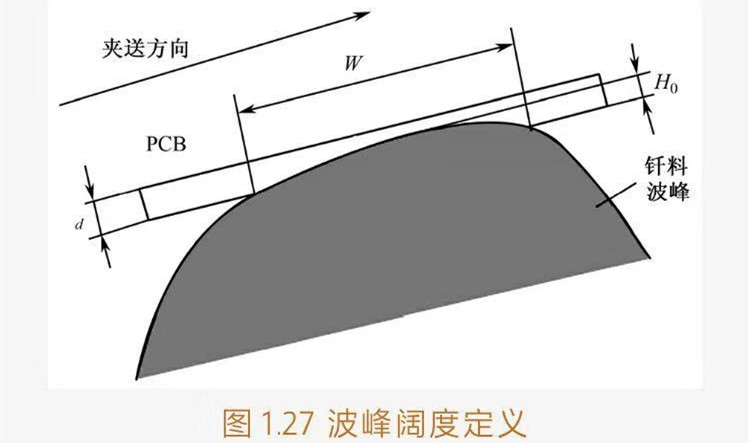 ①定義:當(dāng)波峰高度處于正常作高度Ho(如7~8mm),PCB(板厚為d)位于其上且壓波峰的深度為2d/3時(shí),沿傳送方向PCB下表面與波峰接蝕的長度稱為波峰的闊度。