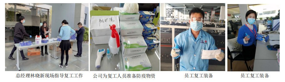 經(jīng)過(guò)福永街道審批同意,2月17日公司迎來(lái)了第一批復(fù)工員工。疫情發(fā)生后,公司成立了以總經(jīng)理林曉新為組長(zhǎng)的防疫應(yīng)急小組,積極安排各項(xiàng)防疫和復(fù)工工作以應(yīng)對(duì)突如其來(lái)的疫情。假期內(nèi),公司密切關(guān)注全國(guó)疫情的發(fā)展,了解各地員工的健康情況、落實(shí)防疫物資的采購(gòu)、做全員的行程排查、開(kāi)展疫情知識(shí)的線上學(xué)習(xí)、安排返廠員工的隔離與生活、園區(qū)的消毒、就餐安全、客戶交期等方面進(jìn)行了細(xì)致的安排,嚴(yán)格落實(shí)各項(xiàng)防控主體責(zé)任。員工是公司的第一生產(chǎn)力,員工的安全與健康是公司的第一要?jiǎng)?wù)!