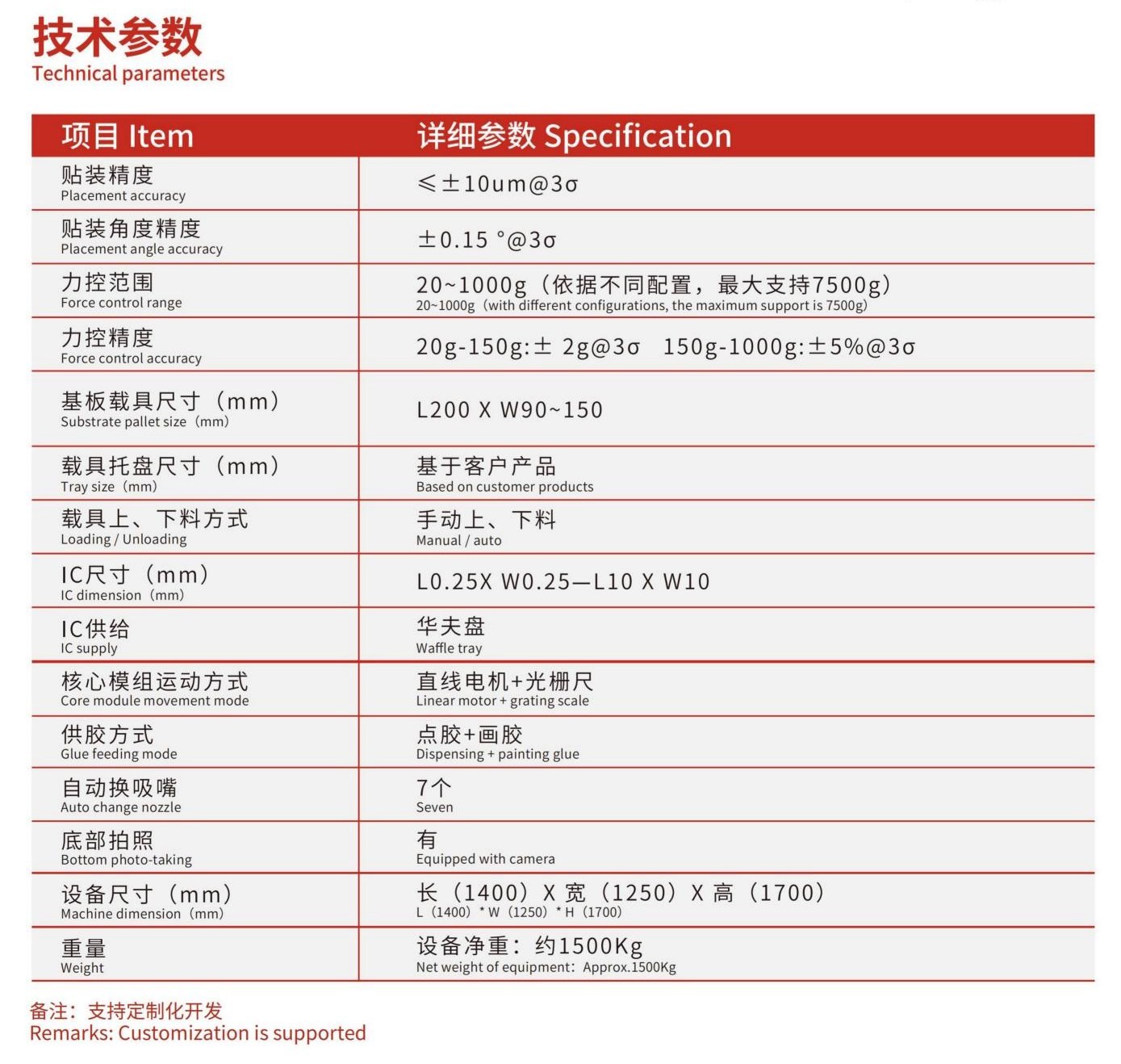 多芯片處理能力高,支持16種不同型號的芯片貼裝;